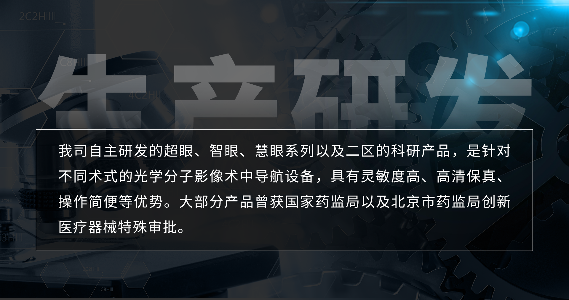 我司自主研發(fā)的超眼、智眼、慧眼系列以及二區(qū)的科研產(chǎn)品,是針對(duì)不同術(shù)式的光學(xué)分子影像術(shù)中導(dǎo)航設(shè)備,具有靈敏度高、高清保真、操作簡(jiǎn)便等優(yōu)勢(shì)。大部分產(chǎn)品曾獲國(guó)家藥監(jiān)局以及北京市藥監(jiān)局創(chuàng)新醫(yī)療器械特殊審批。