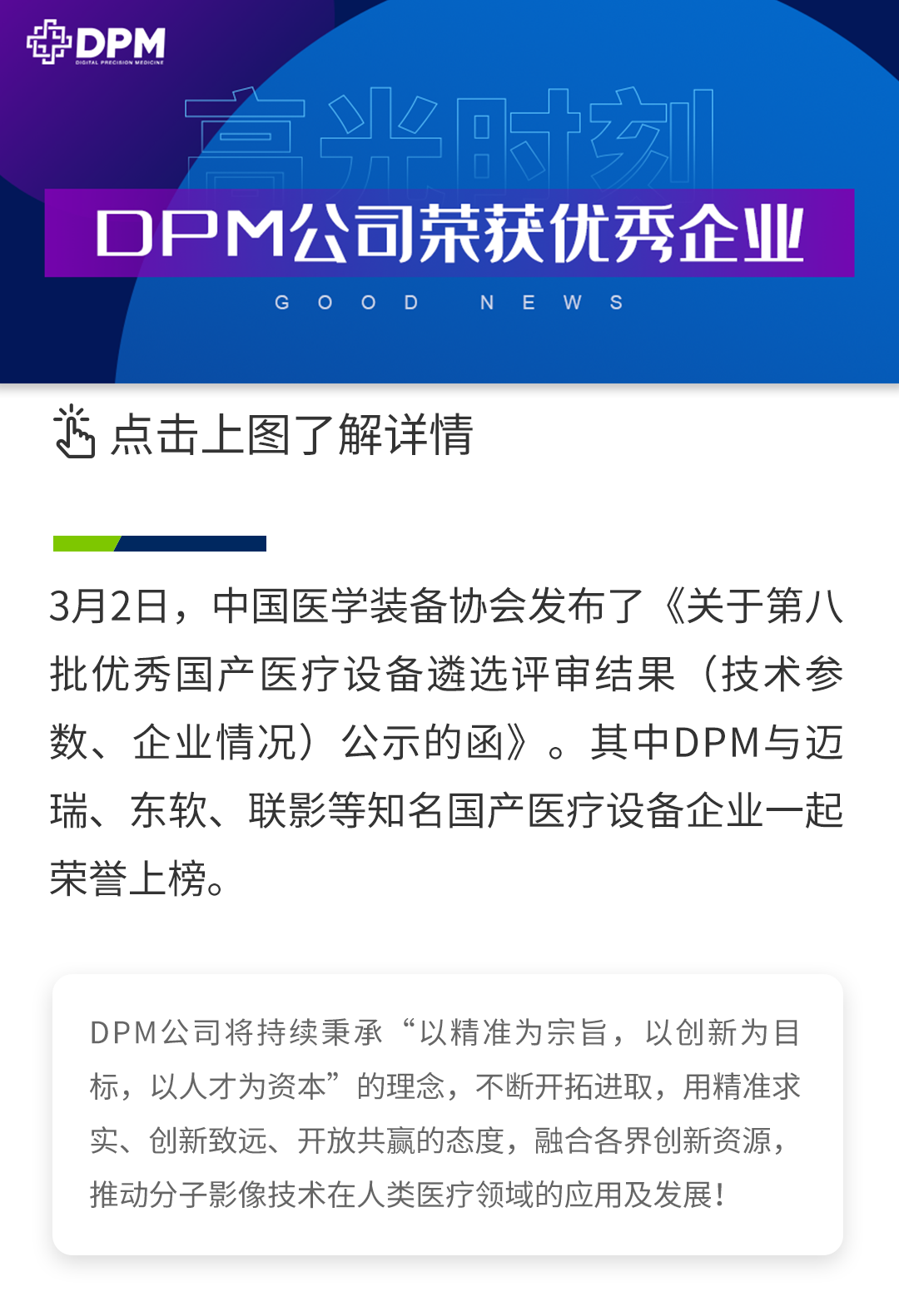 高光時刻 I DPM公司榮獲2022年度第八批優(yōu)秀國產(chǎn)醫(yī)療設(shè)備企業(yè)
